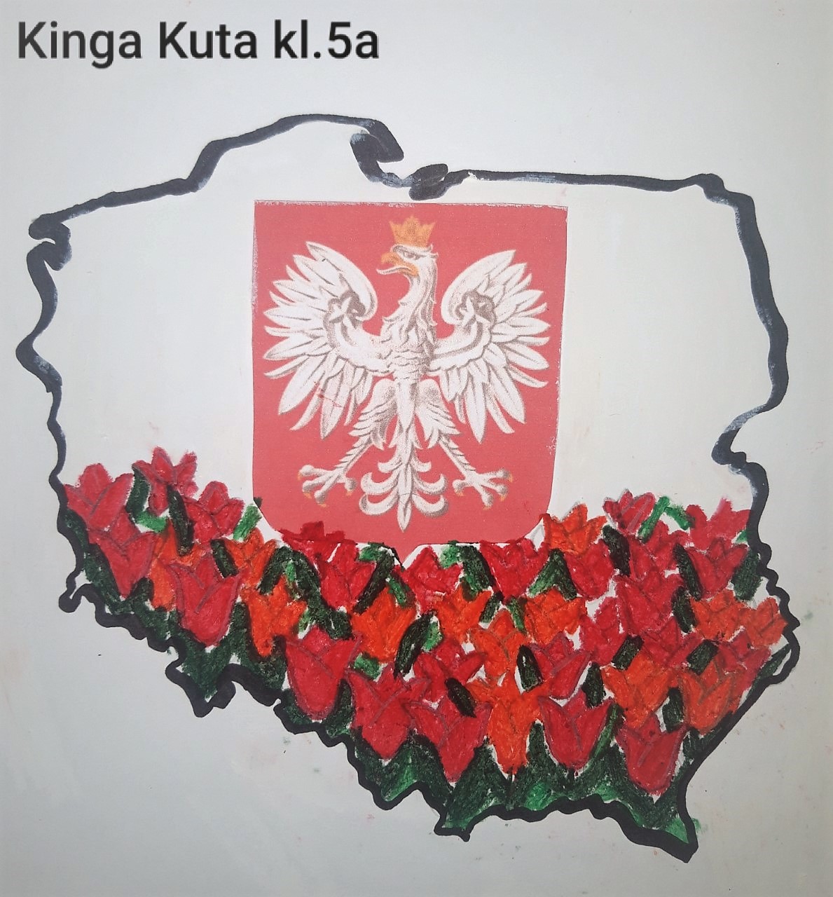 Uczniowie klasy piątej, którzy w ramach lekcji plastyki z okazji Święta Flagi przygotowali piękne kompozycje inspirowane barwami narodowymi zapraszają na wystawę 🎨👍 W radosnym, majowym nastroju pozdrawiamy wszystkich naszych przyjaciół i zapraszamy do wspólnego świętowania 🇵🇱🌺🙂