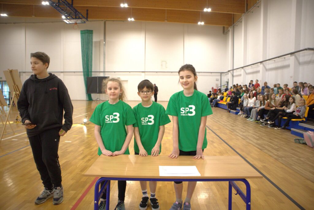 Mikołaj Dejko, Bartłomiej Pociask, Karolina Misielak – klasa VIII d i Karol Matłok – klasa VIII c