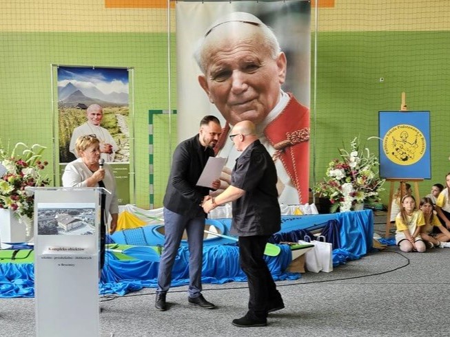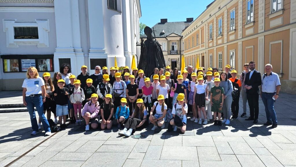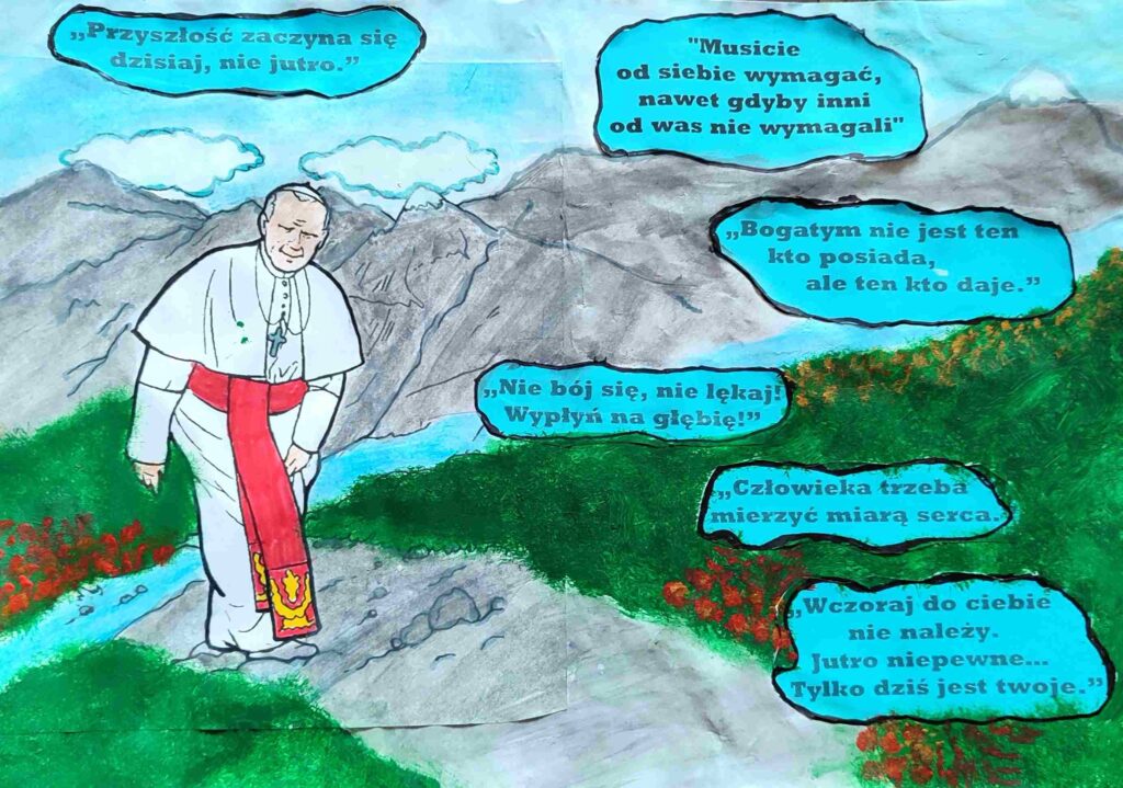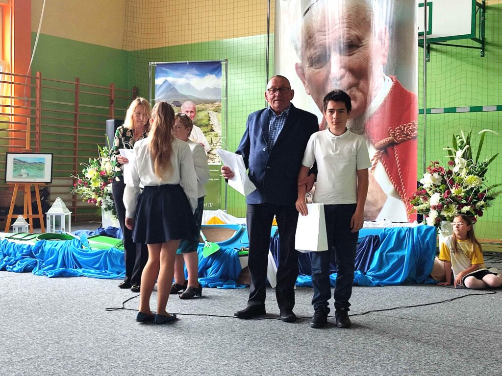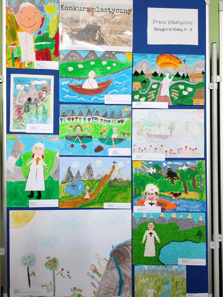 23 maja 2024 r. nasi uczniowie zostali zaproszeni na uroczystość podsumowania Międzyszkolnego Konkursu Plastycznego pod hasłem „Święty Jan Paweł II – Przewodnik po górach i na wodzie” zorganizowanym przez Publiczną Szkołę Podstawową w Brzeźnicy. Wtedy też, podczas Dnia Patrona Szkoły – Świętego Jana Pawła II, odbyła się uroczysta gala wręczenia nagród w konkursach: wiedzowym, literackim i plastycznym. Honorowy Patronat nad konkursem objął Wójt Gminy Dębica, Muzeum w Wadowicach, Wydział Katechetyczny Diecezji Tarnowskiej.