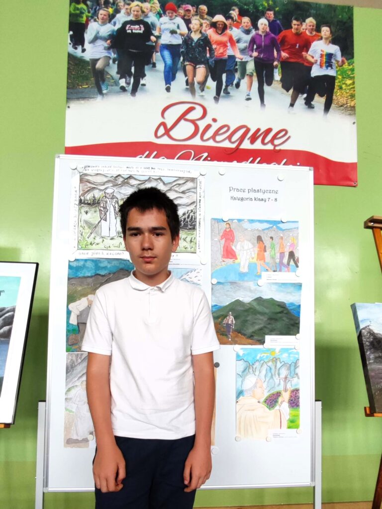 Musimy wspomnieć, iż obraz Maćka został podarowany przez Organizatora konkursu ks. dr Łukaszowi Piórkowskiemu – dyrektorowi Muzeum Świętego Jana Pawła II w Wadowicach 👼 Maciek zatem może być bardzo dumny, bowiem jego dzieło będzie częścią zbiorów muzeum 👍