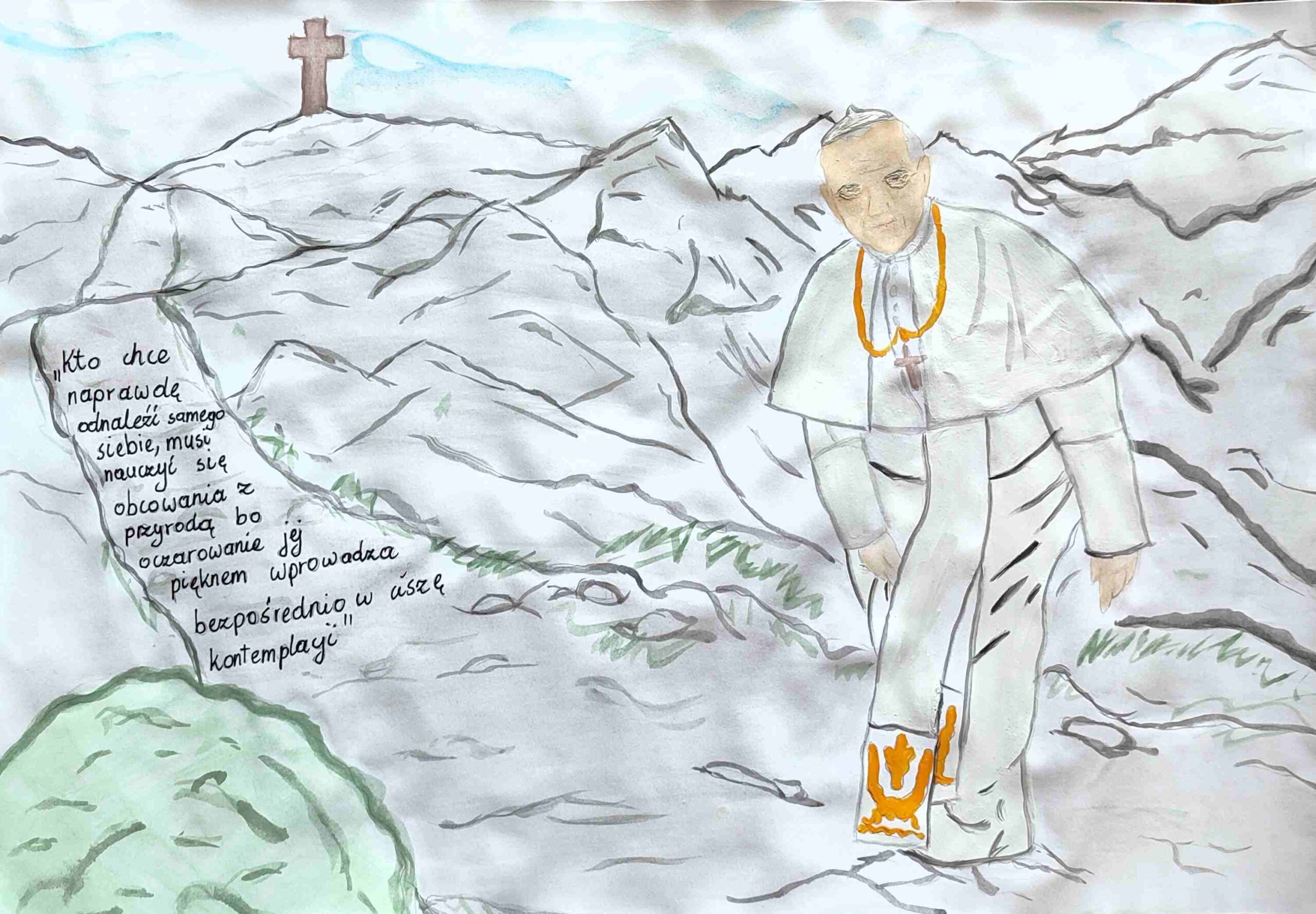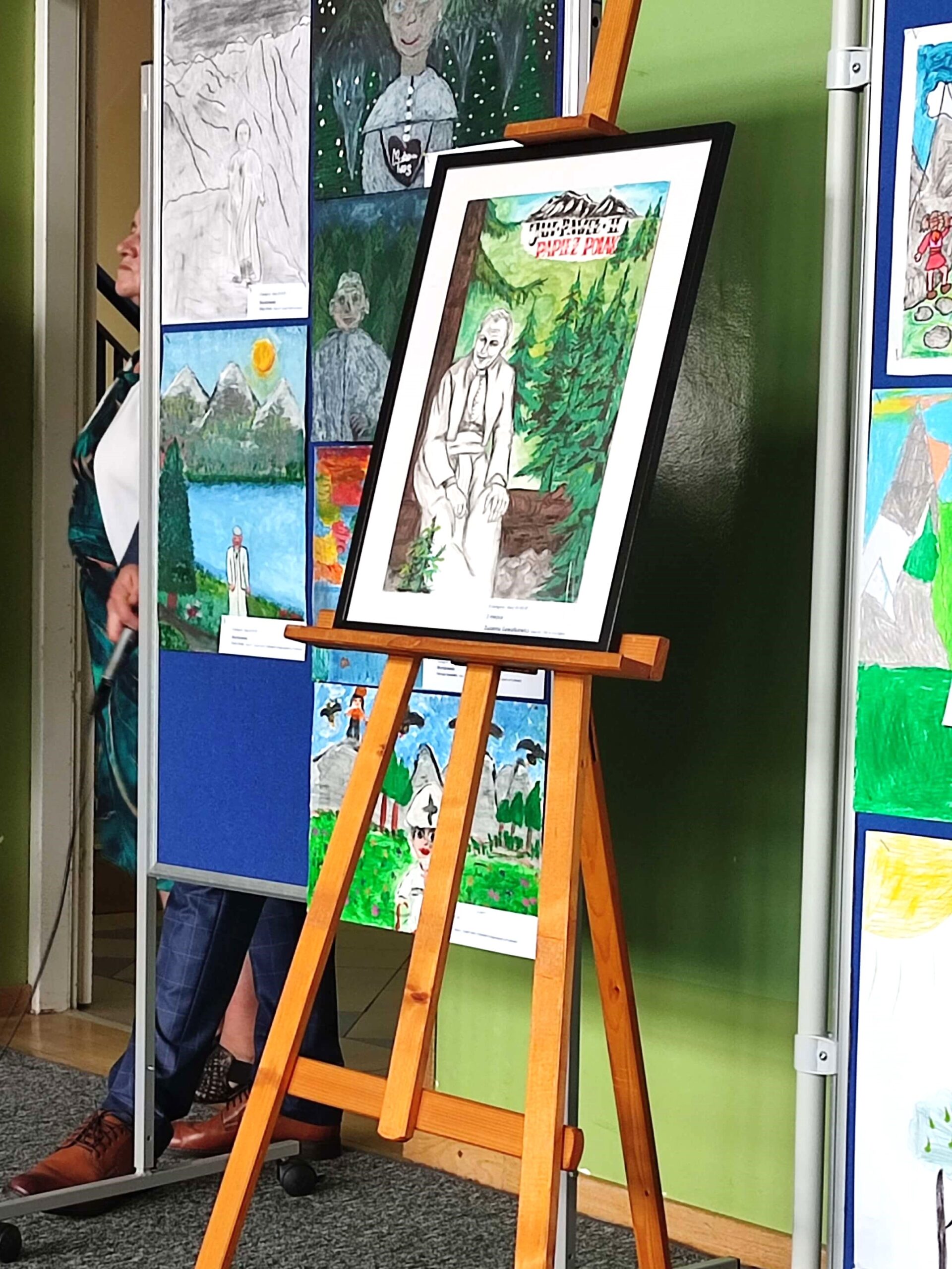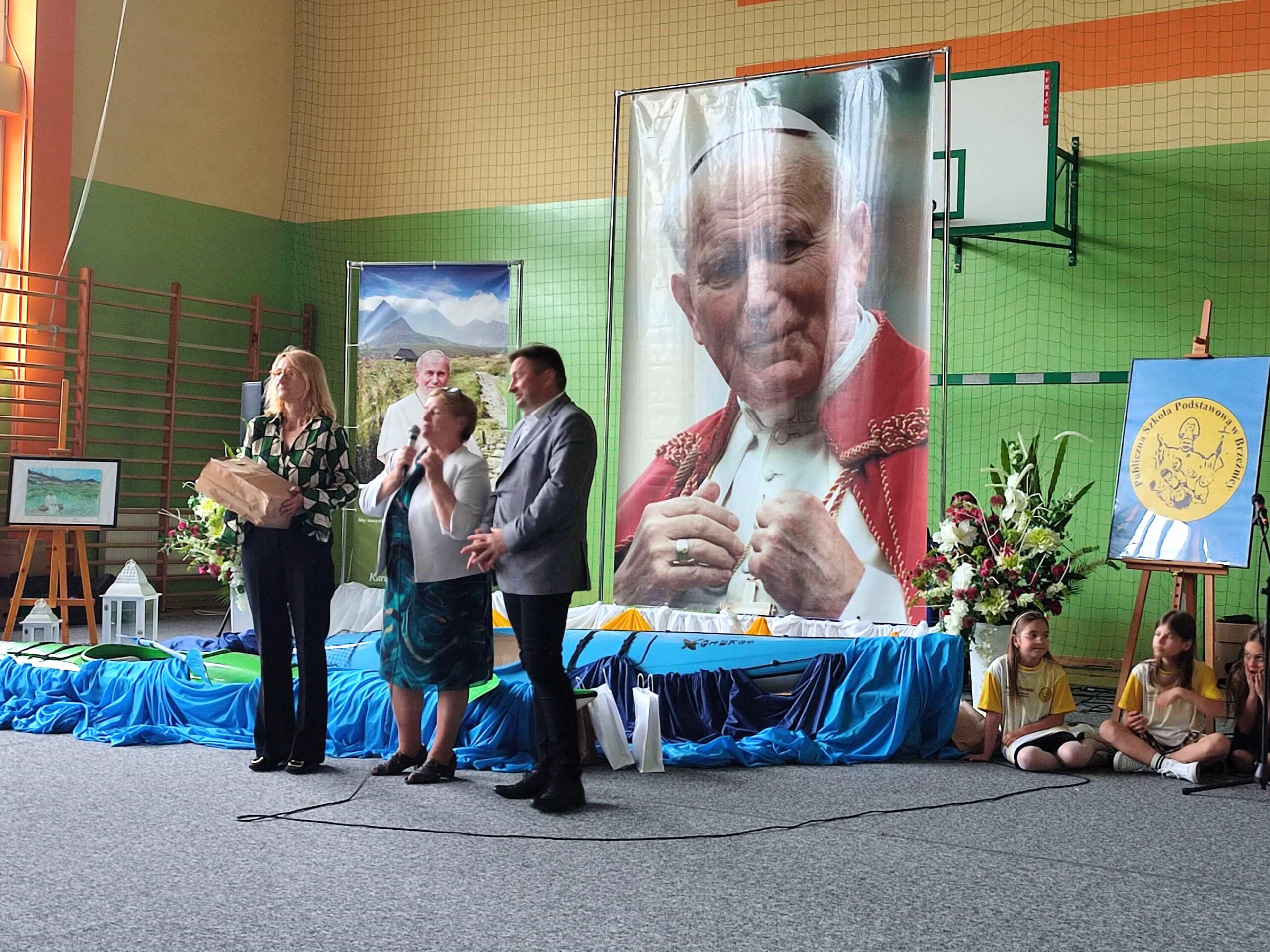 23 maja 2024 r. nasi uczniowie zostali zaproszeni na uroczystość podsumowania Międzyszkolnego Konkursu Plastycznego pod hasłem „Święty Jan Paweł II – Przewodnik po górach i na wodzie” zorganizowanym przez Publiczną Szkołę Podstawową w Brzeźnicy. Wtedy też, podczas Dnia Patrona Szkoły – Świętego Jana Pawła II, odbyła się uroczysta gala wręczenia nagród w konkursach: wiedzowym, literackim i plastycznym. Honorowy Patronat nad konkursem objął Wójt Gminy Dębica, Muzeum w Wadowicach, Wydział Katechetyczny Diecezji Tarnowskiej.