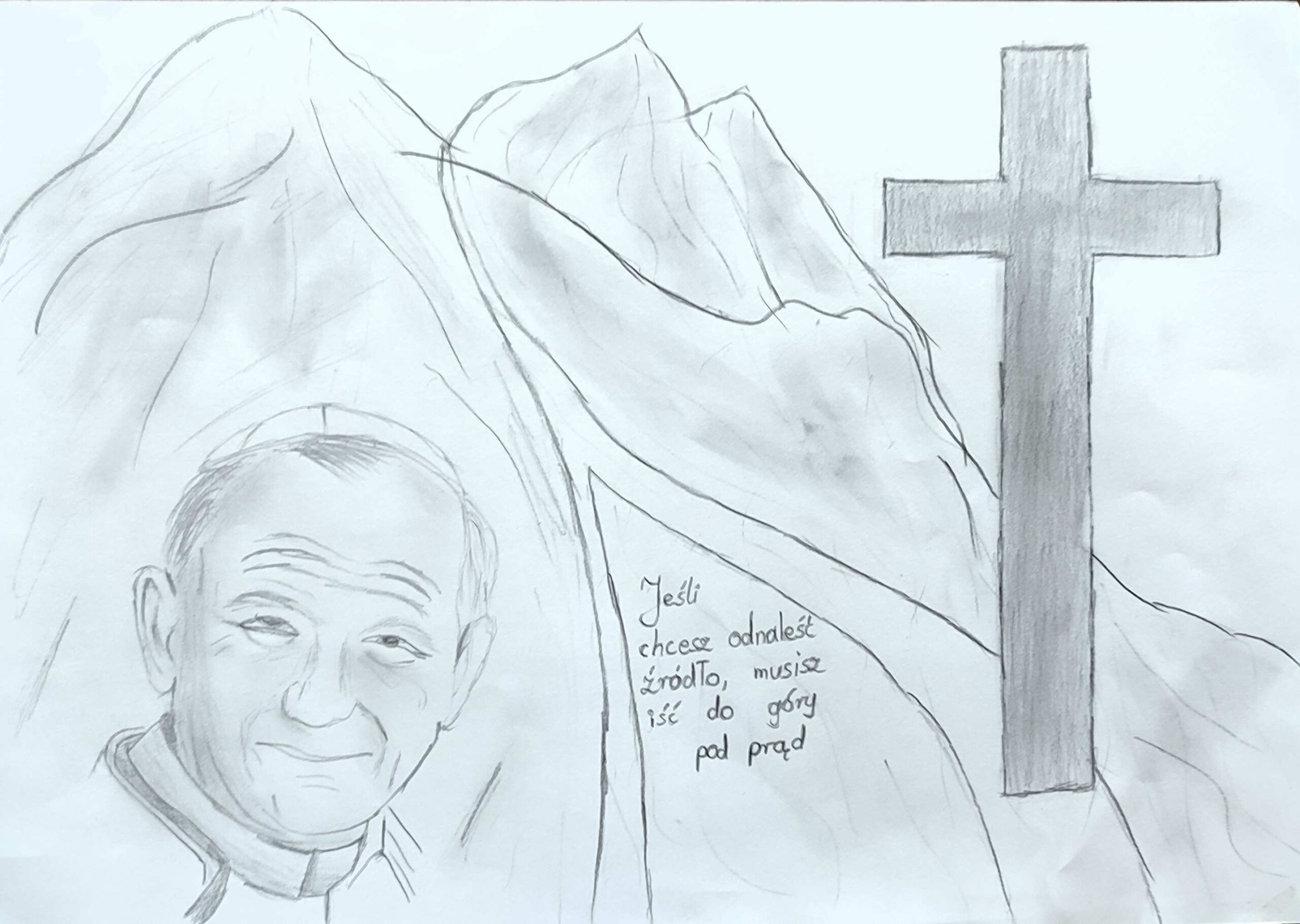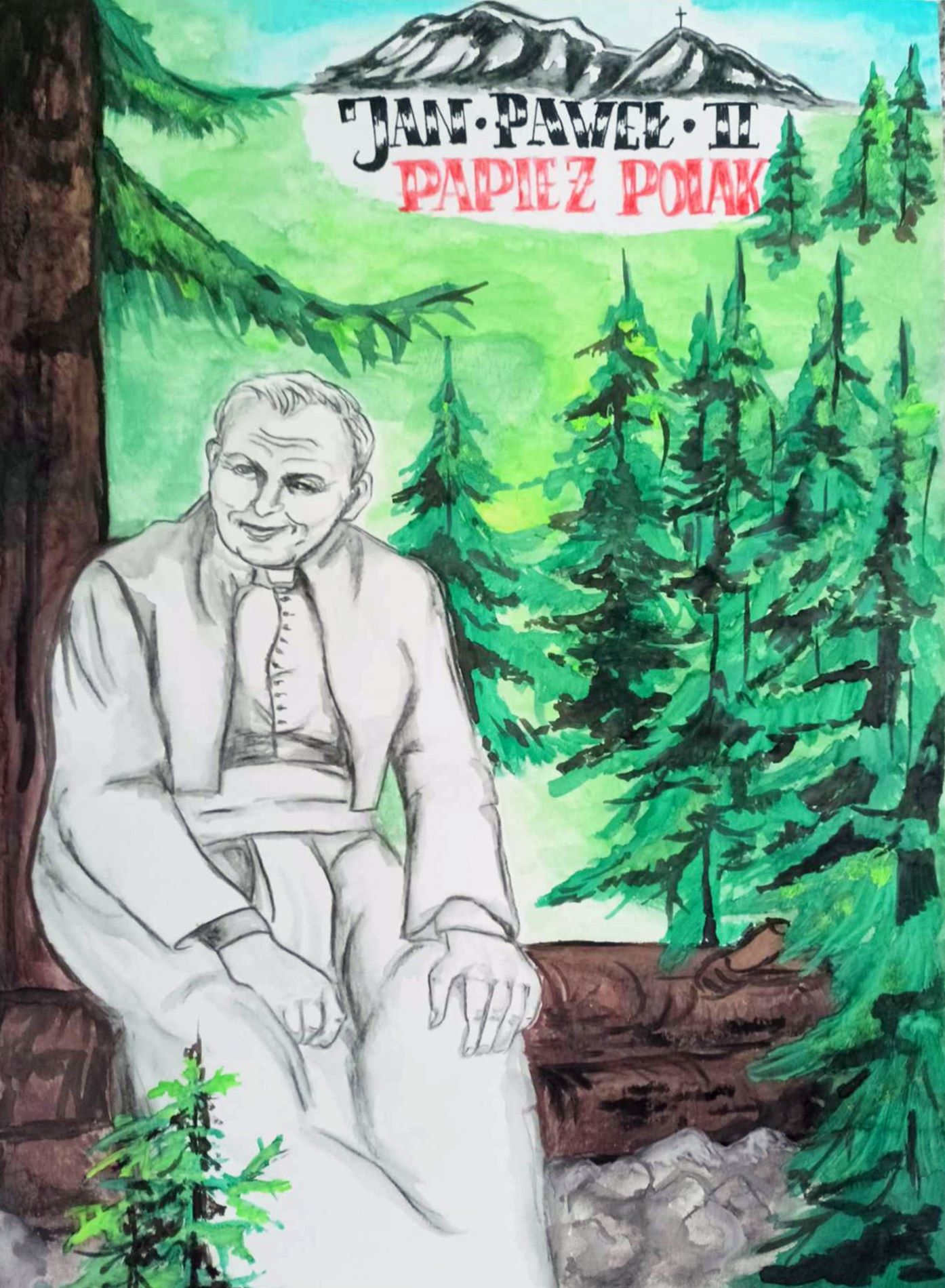 Musimy wspomnieć, iż obraz Maćka został podarowany przez Organizatora konkursu ks. dr Łukaszowi Piórkowskiemu – dyrektorowi Muzeum Świętego Jana Pawła II w Wadowicach 👼 Maciek zatem może być bardzo dumny, bowiem jego dzieło będzie częścią zbiorów muzeum 👍