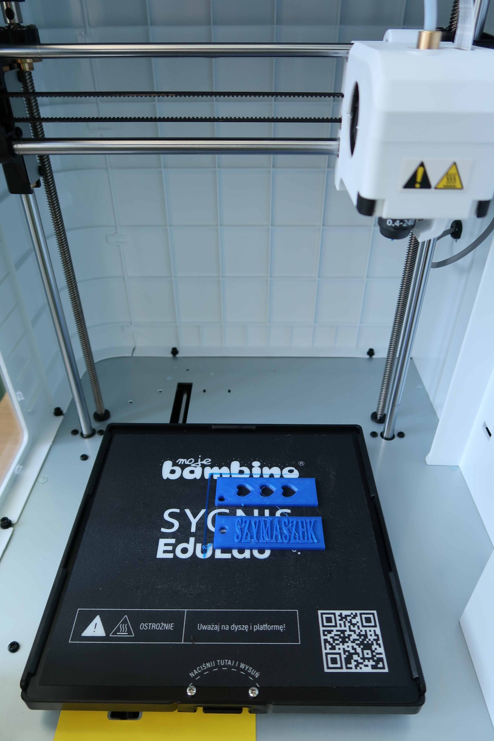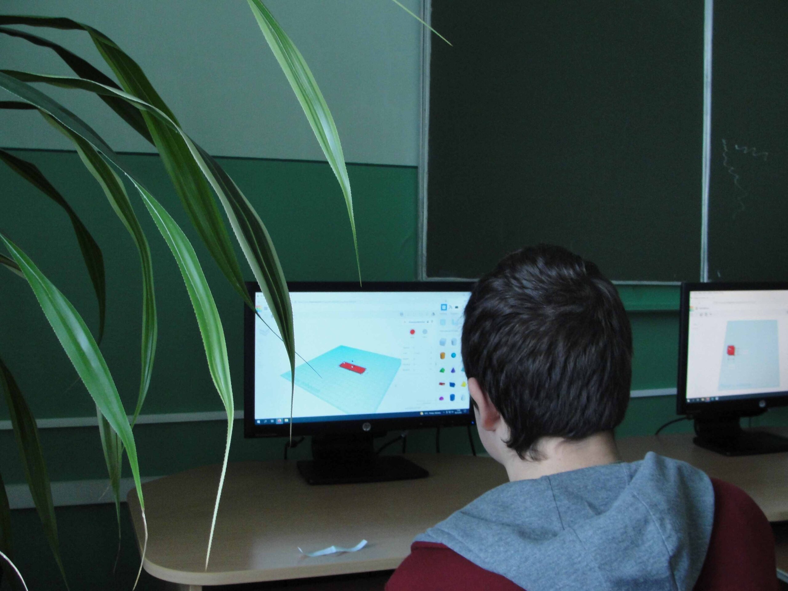 Po zapoznaniu z drukarką i oprogramowaniem uczniowie przeszli do wyboru i tworzenia projektów trójwymiarowych obiektów do druku. Największą atrakcją był sam fakt drukowania formy, gdzie uczeń mógł sam stworzyć i zaprogramować wydruk – w tym przypadku „przywieszki do kluczy”.