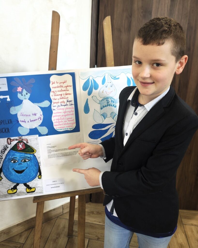 Jan Krawczyk, uczeń klasy 5a – wyróżnienie w konkursie plastycznym na Bohatera /Przyjaciela Wodociągów, pomocnika w edukacji ekologicznej